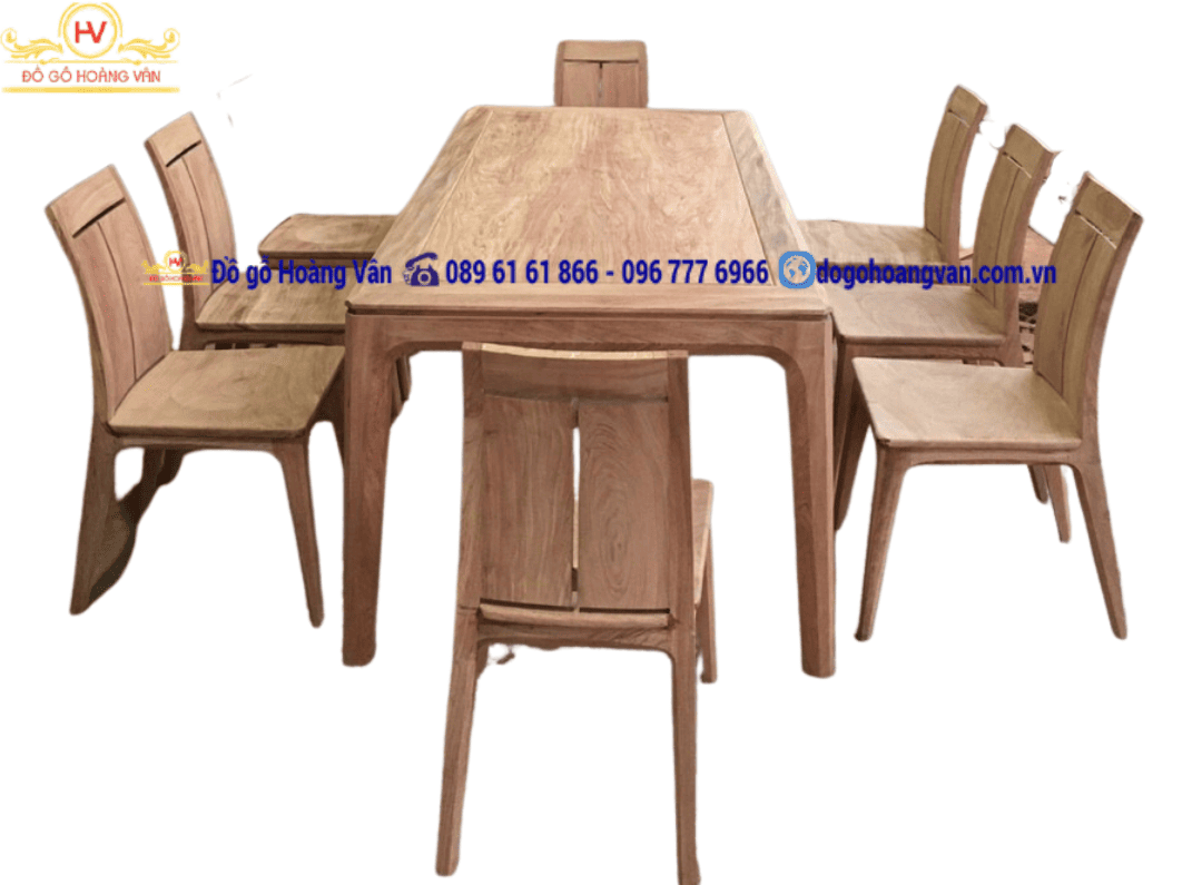 - Mẫu bàn ghế ăn được thiết kế và Sản xuất bởi Đồ Gỗ Hoàng Vân – Được gắn logo và nhãn hiệu bảo vệ hàng chính hãng