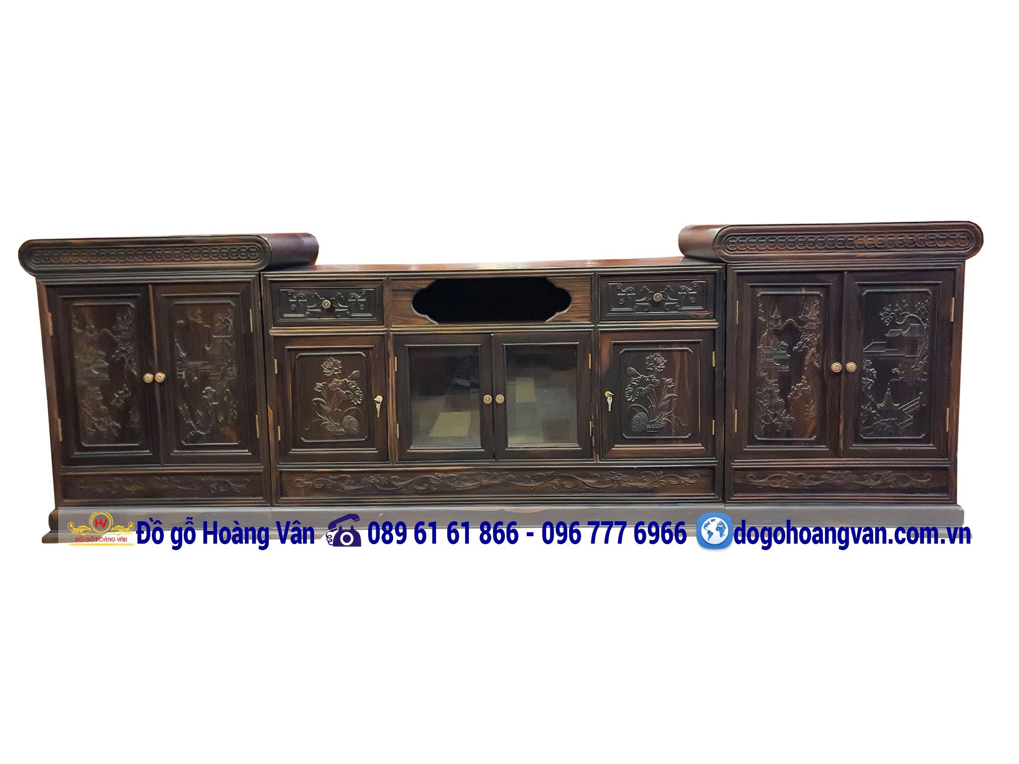 Mẫu kệ ti vi gỗ mun hoa kiểu mới K26