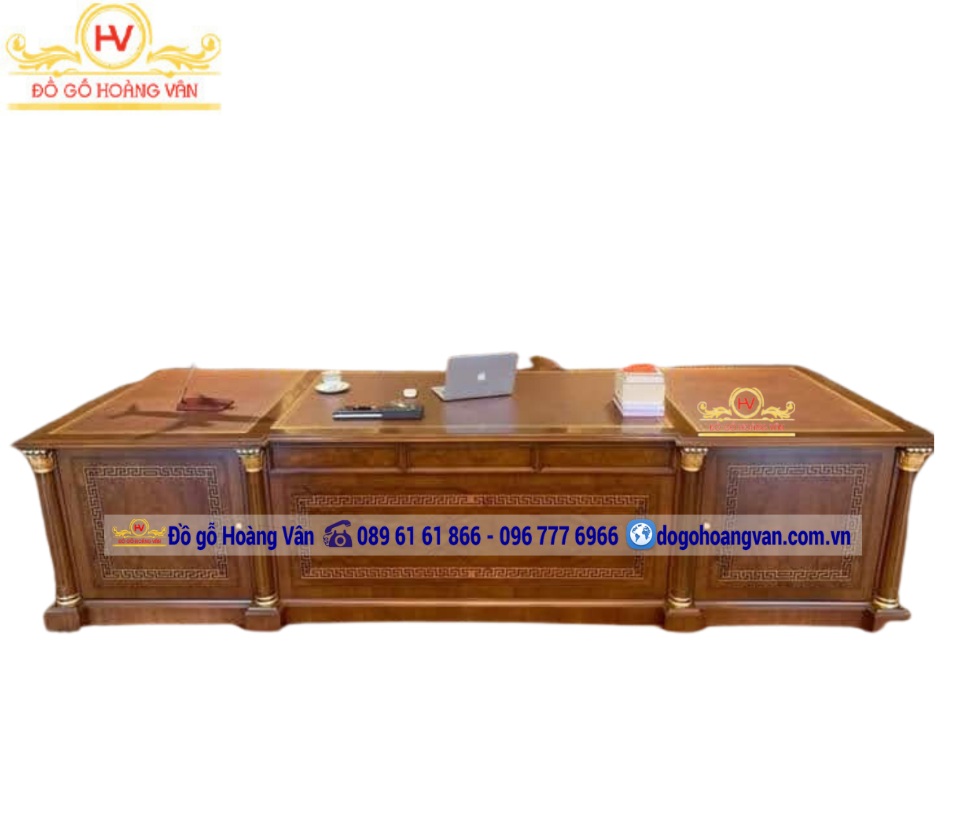 - Bàn làm việc giám đốc tân cổ điển được thiết kế và Sản xuất bởi Đồ Gỗ Hoàng Vân – Được gắn logo và nhãn hiệu bảo vệ hàng chính hãng