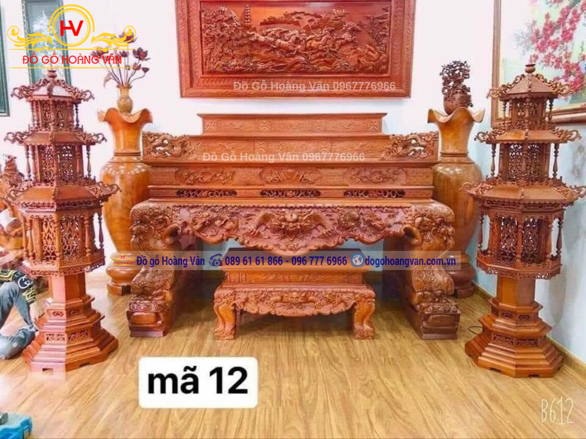 - Mẫu sập thờ được thiết kế và Sản xuất bởi Đồ Gỗ Hoàng Vân – Được gắn logo và nhãn hiệu bảo vệ hàng chính hãng