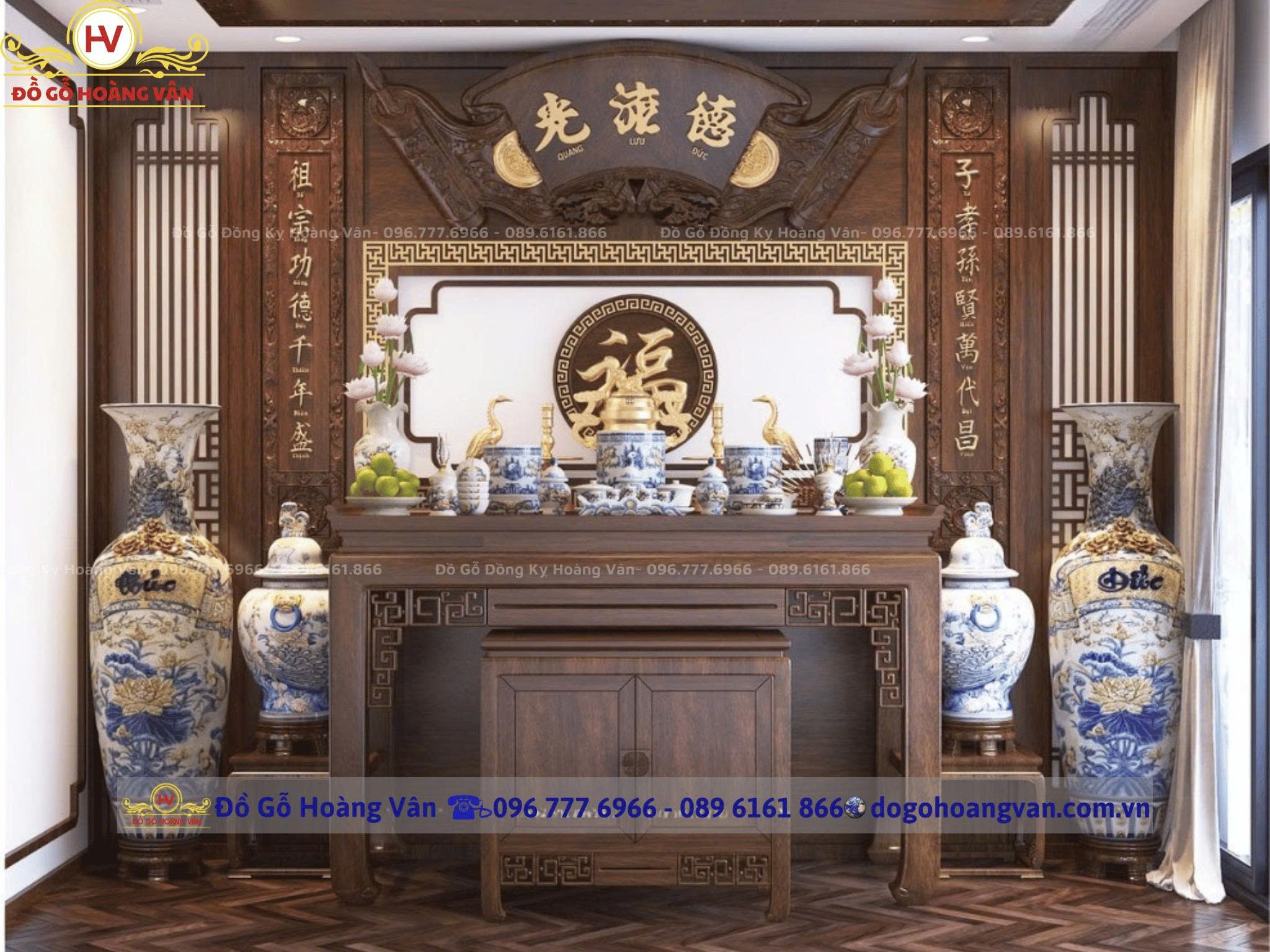 Đồ gỗ HOÀNG VÂN tư vấn thiết kế phòng thờ gia đình, cơ quan, nhà thờ theo phong thủy với các mẫu phòng thờ đẹp mang lại may mắn, tiền tài