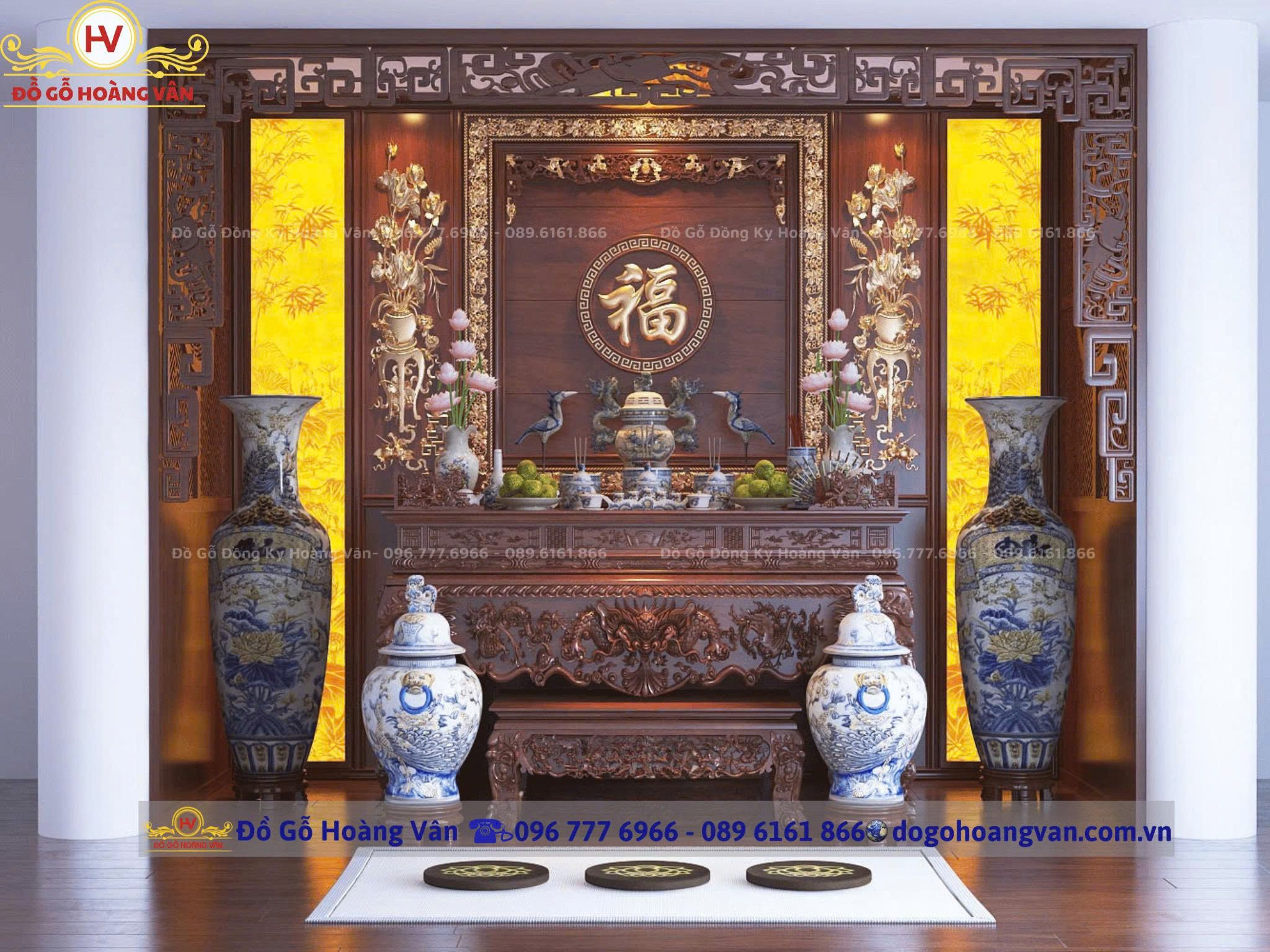 Đồ gỗ HOÀNG VÂN tư vấn thiết kế phòng thờ gia đình, cơ quan, nhà thờ theo phong thủy với các mẫu phòng thờ đẹp mang lại may mắn, tiền tài