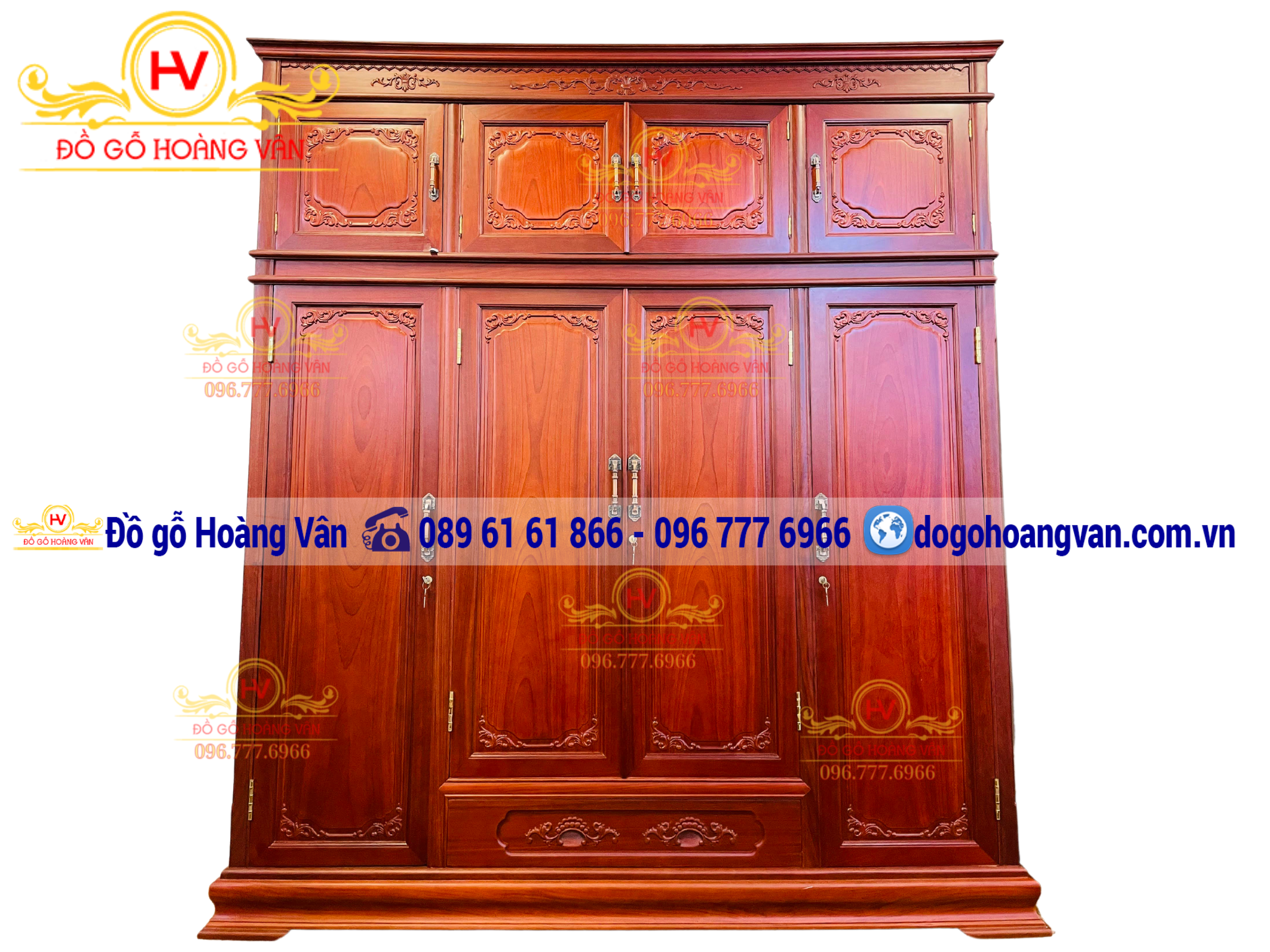 Kích thước: Tủ 2 cánh, 3 cánh, 4 cánh , 5 cánh, 6 cánh.......( 1m3, 1m7, 2m2, 2m4, 2m6, 2m8,3m....)- Cất liệu: Gỗ Gỗ Gõ Đỏ, hoặc Gỗ Hương Đá, Gỗ Gụ... Sơn PU imchem cao cấp