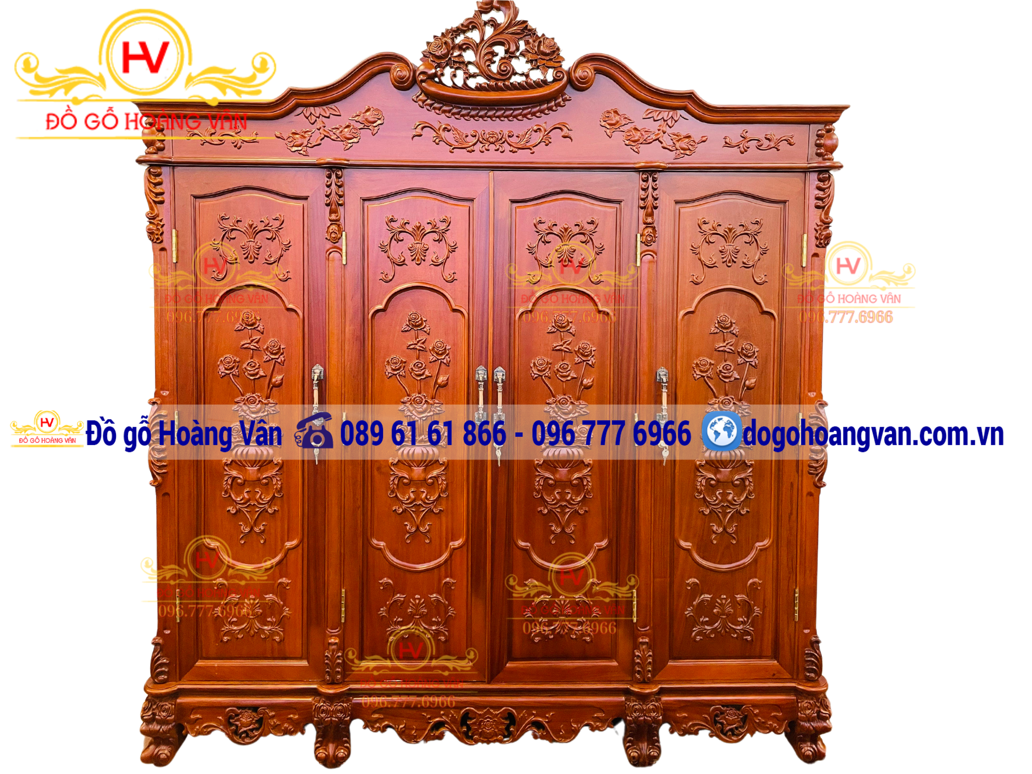 TỦ ÁO ĐỤC TRẠM HOA HỒNG GỖ TỰ NHIÊN TA178