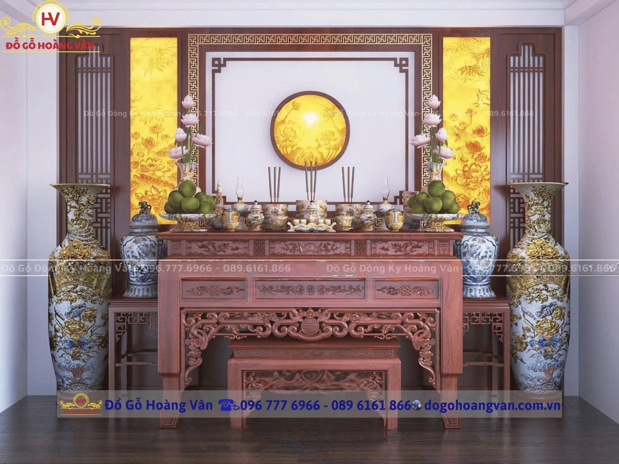 Đồ gỗ HOÀNG VÂN tư vấn thiết kế phòng thờ gia đình, cơ quan, nhà thờ theo phong thủy với các mẫu phòng thờ đẹp mang lại may mắn, tiền tài